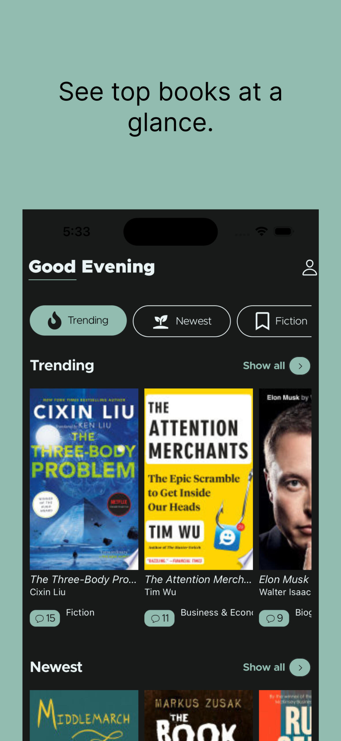 Never read alone when you can see what's trending, what's new, and what fits your interests based on community recommendations.